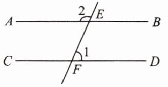 11. 如图,$AB// CD$,$EF$ 分别交 $AB$,$CD$ 于点 $E$,$F$,$\angle 1 = 70^{\circ}$,求 $\angle 2$ 的度数。