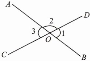 1.如图,直线AB与直线CD相交于点O,$∠2=2∠1$,则$∠3$的度数是(