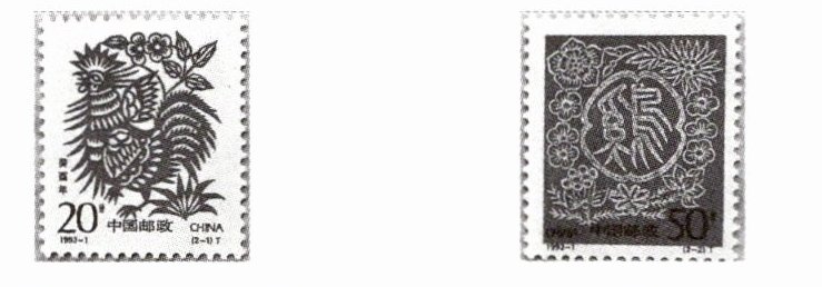4.下面是两枚鸡年生肖邮票,请你根据要求回答问题。