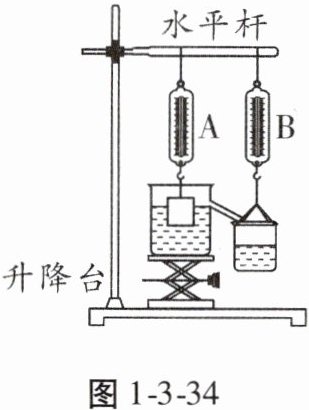 2. (2024·德州中考)小强用如图1-3-34所示的实验装置验证阿基米德原理,通过调节升降台让金属块浸入盛满水的溢水杯中(金属块始终未与容器底接触),溢出的水会流入右侧空桶中。下列说法正确的是 ( )