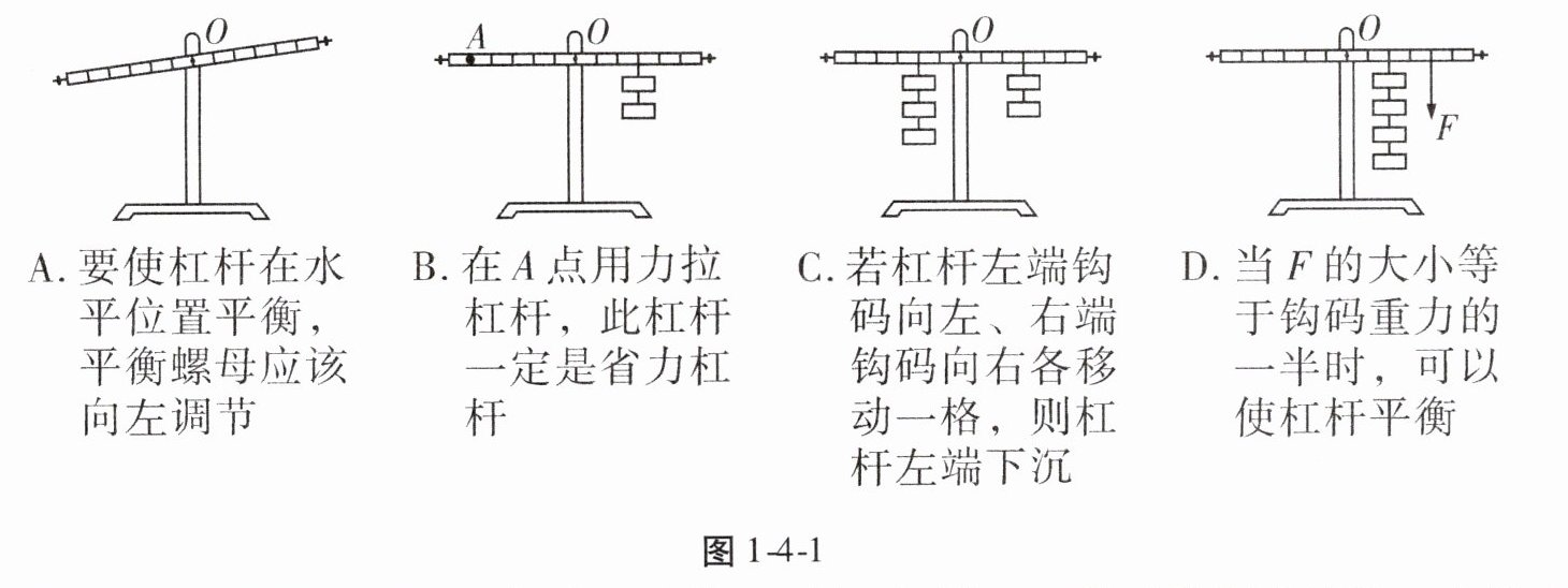 4. 如图1-4-1所示是“探究杠杆平衡条件”的实验装置。关于此实验说法正确的是( )