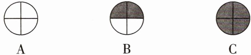 3. 将天空看成一个圆,将其分成四等分,涂色部分表示云,空白部分表示天空。以下表示多云这种天气的是(