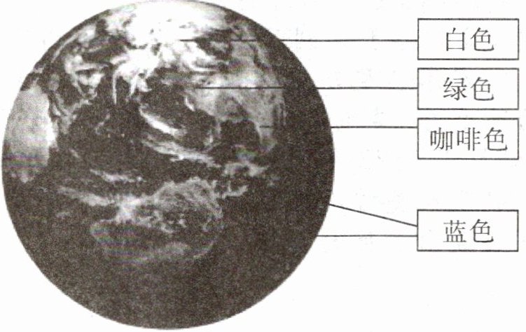 1. 白色是云层,绿色是植被,咖啡色是陆地,蓝色是海洋。