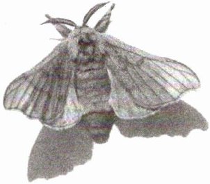 蚕蛾身体分头、胸、腹,头有一对触角,胸有三对足。
