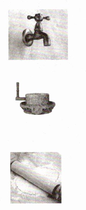 轮上用力:水龙头(轮上拧动)、第二个图(类似轮轴在轮上用力的图)、擀面杖(轮上用力擀面)。