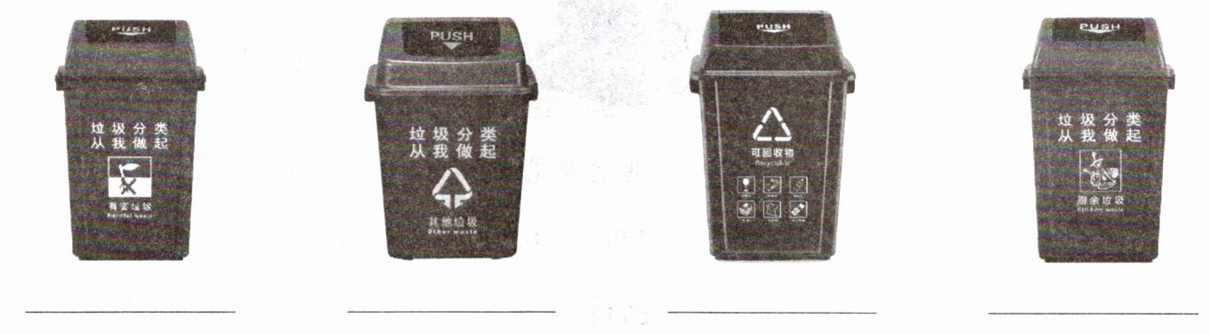 某校举行了一场别开生面的垃圾分类比赛活动,在垃圾分类知识竞赛活动结束后,举行了垃圾分类实践活动比赛。其规则是将 15 种不同的固体垃圾分类投放进垃圾桶,分类准确、用时最短者胜出。请你参与模拟比赛,将 15 种垃圾分类后,在对应的垃圾桶下填写编号。