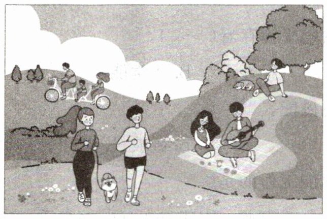 如图展现了人们在公园里活动的场景,请回答下列问题。