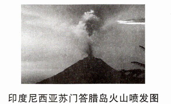 (1) 苏门答腊岛位于亚欧板块与印度洋板块交界处,地壳活跃。