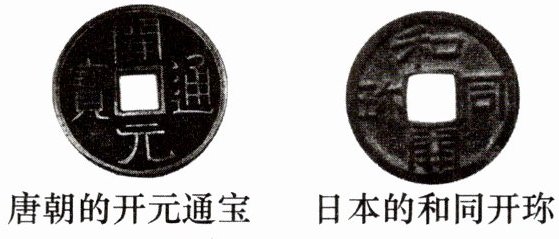 2. 如图为唐朝时期中日两国的货币。日本的和同开珎,形制和重量与唐朝的开元通宝很相似。这反映出当时(
