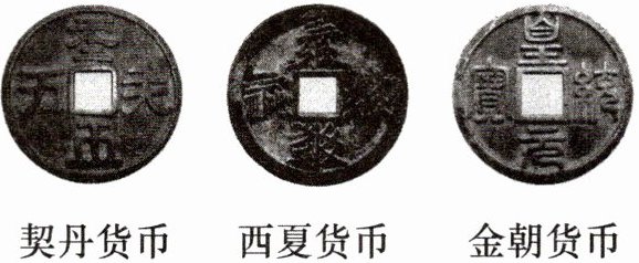 1. 如图是北宋周边民族政权发行的货币,均采用圆形方孔的形制,同时书写钱文。这反映了各民族政权之间(