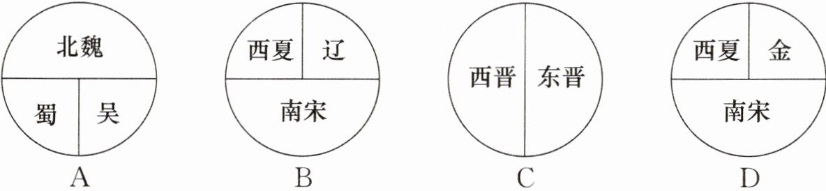 6. 小亮同学绘制了四幅中国古代史上政权并立局面示意图,其中绘制正确的是(