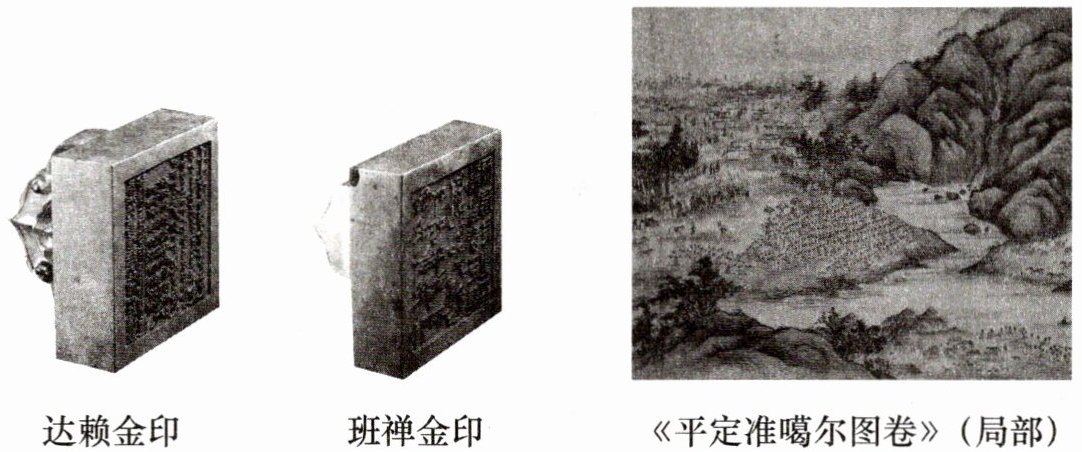 2. 材料二的几幅图体现了清政府为维护统一,分别加强了对哪两个地区的管辖?请据图概括清政府民族政策的特点。