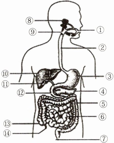 2. 如图为人体消化系统模式图,请据图回答下列问题: