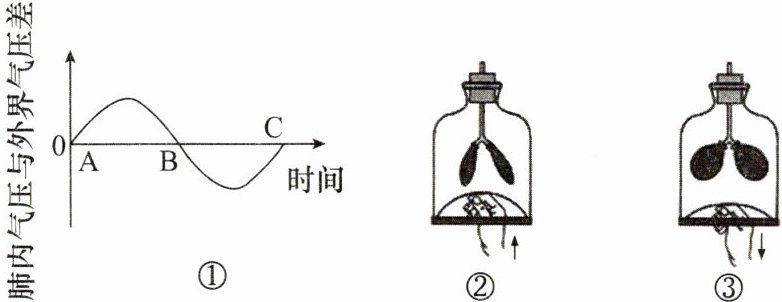 )A. 图①中曲线的 AB 段与图②都表示吸气状态