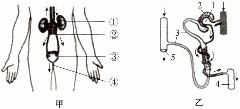 ____。(4)医生在检验某病人的尿液成分时,发现尿液中含有较多的血细胞和大分子蛋白质,那么最有可能发生病变的部位是图乙中____