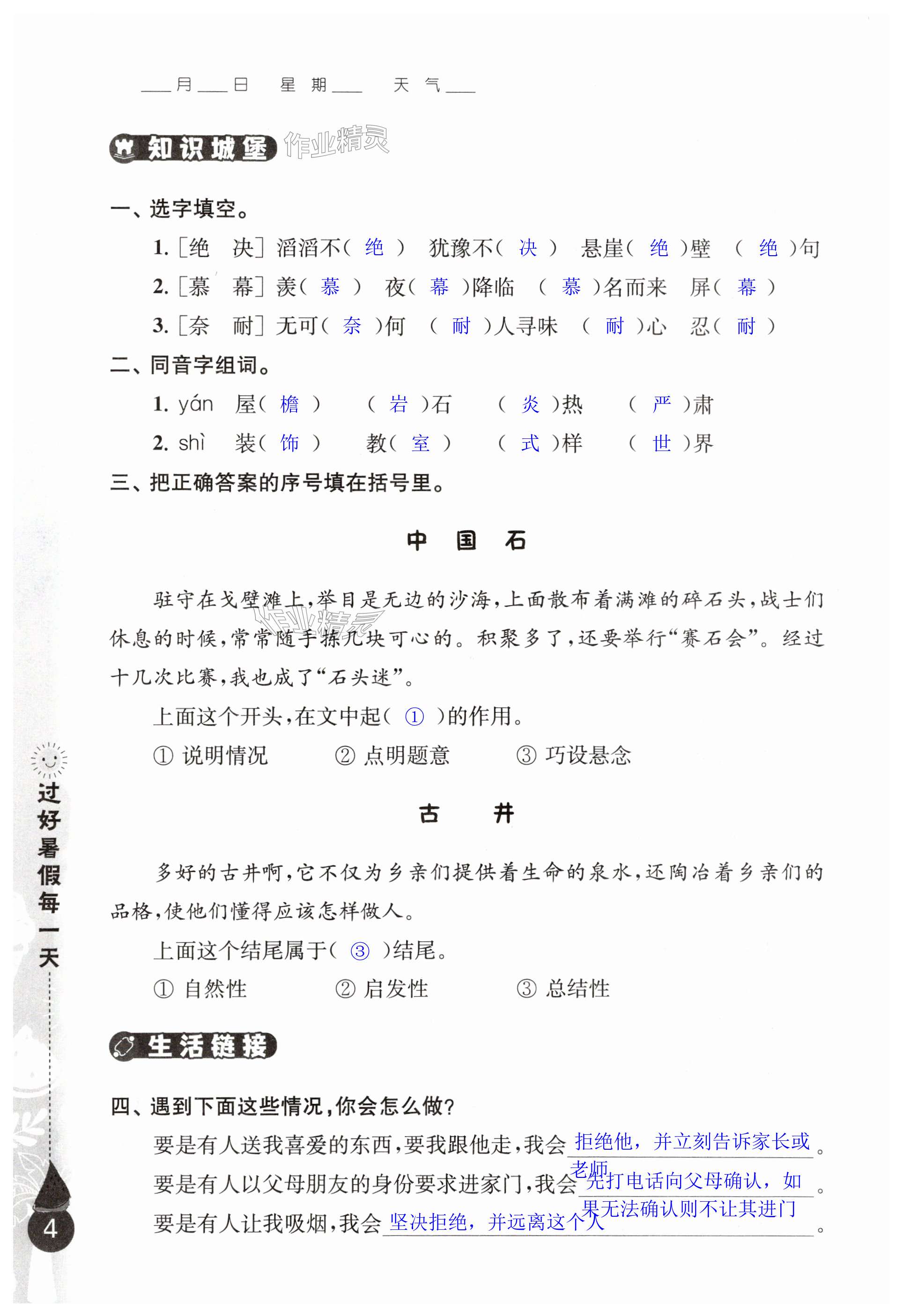 注:目前有些书本章节名称可能整理的还不是很完善,但都是按照顺序排列的,请同学们按照顺序仔细查找。练习册 2025年过好暑假每一天四年级L版 答案主要是用来给同学们做完题方便对答案用的,请勿直接抄袭。