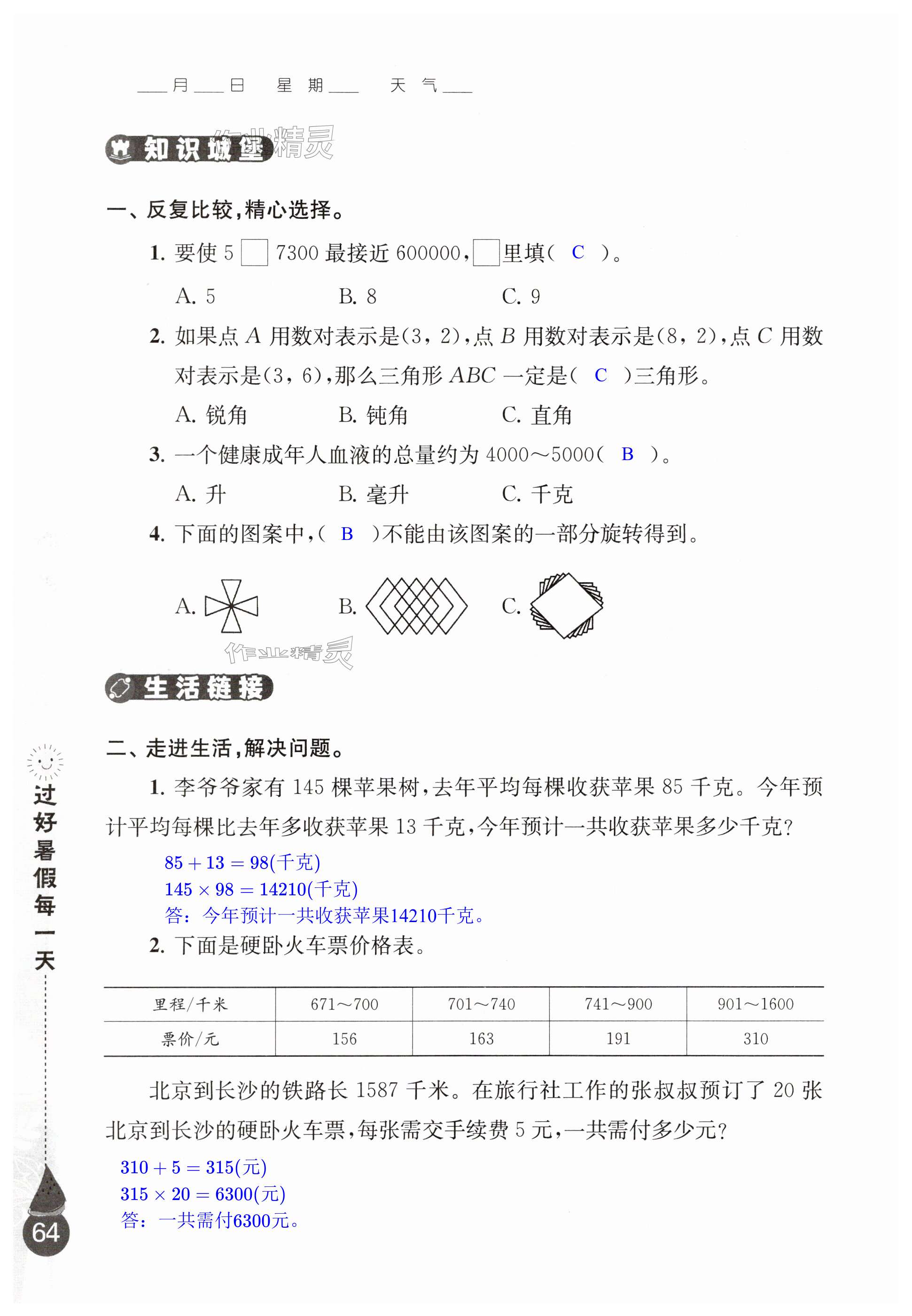 注:目前有些书本章节名称可能整理的还不是很完善,但都是按照顺序排列的,请同学们按照顺序仔细查找。练习册 2025年过好暑假每一天四年级L版 答案主要是用来给同学们做完题方便对答案用的,请勿直接抄袭。