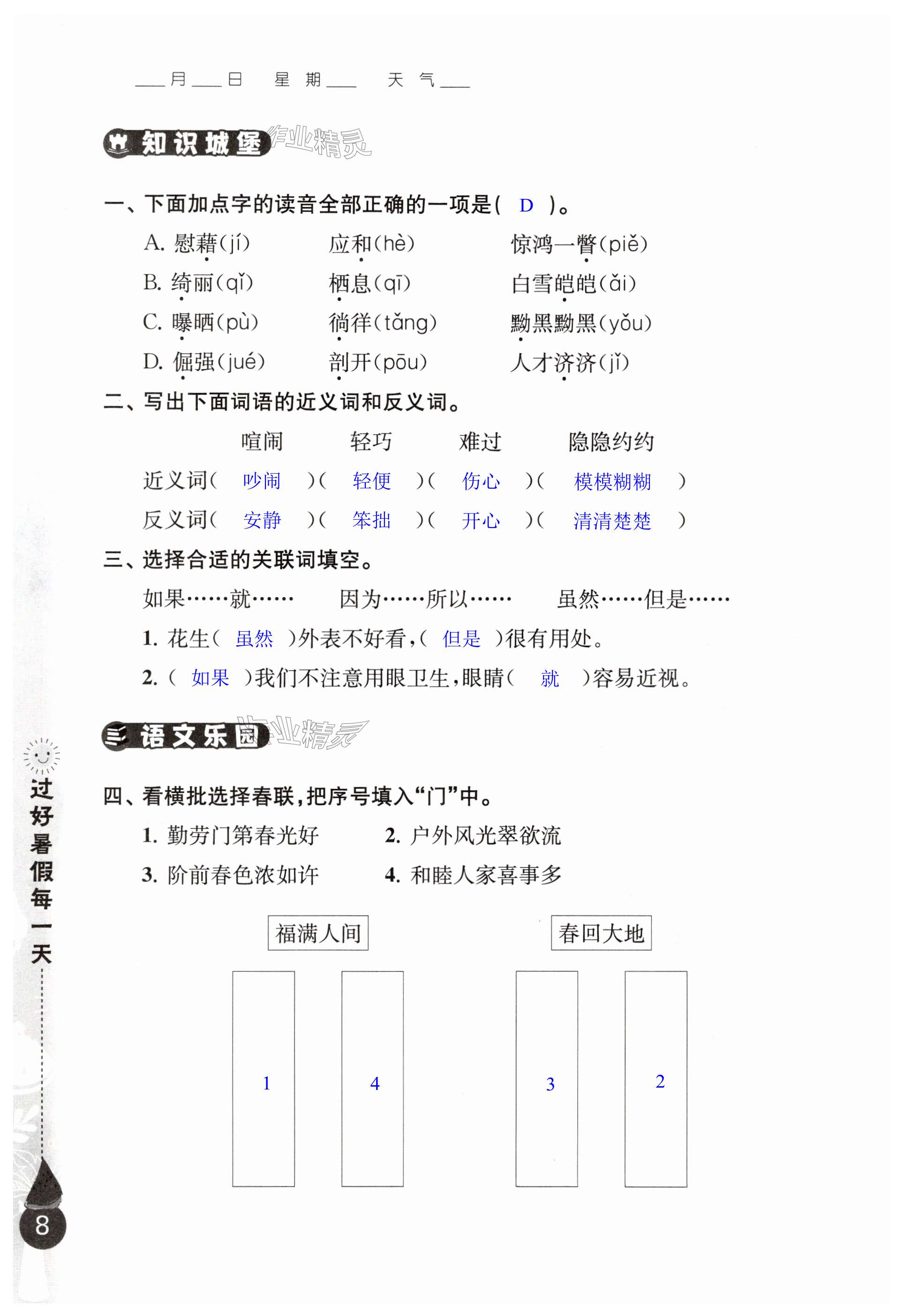 注:目前有些书本章节名称可能整理的还不是很完善,但都是按照顺序排列的,请同学们按照顺序仔细查找。练习册 2025年过好暑假每一天四年级L版 答案主要是用来给同学们做完题方便对答案用的,请勿直接抄袭。