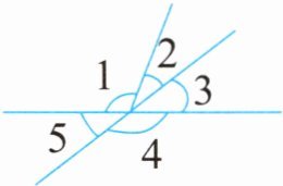 如右图,$∠2=30^{\circ}$,$∠5=35^{\circ}$。$∠1=()$,$∠3=()$,$∠4=()$。