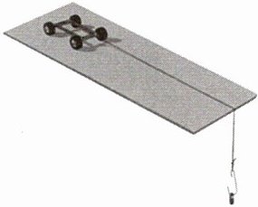 如右图,让我们利用细绳和小车做一个小缆车,在回形针上挂上垫圈,仔细观察小车的运动状况。