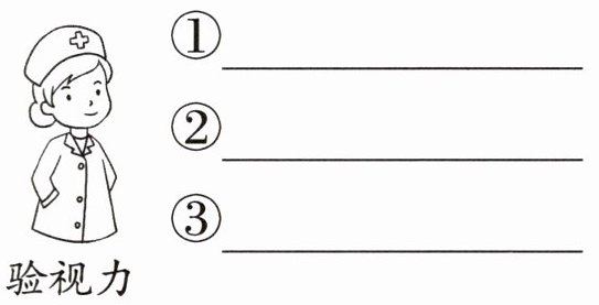 星星、欢欢、可可三位同学要测肺活量、验视力,每项检查都需要3分钟,怎样安排用时最少?要用多长时间才能做完这些检查?请把三位同学的名字按你设计的检查顺序记录在医生旁边的横线上。