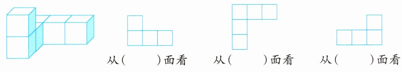 把6个正方体摆成左下图的样子。下面的图分别是从什么位置看到的?