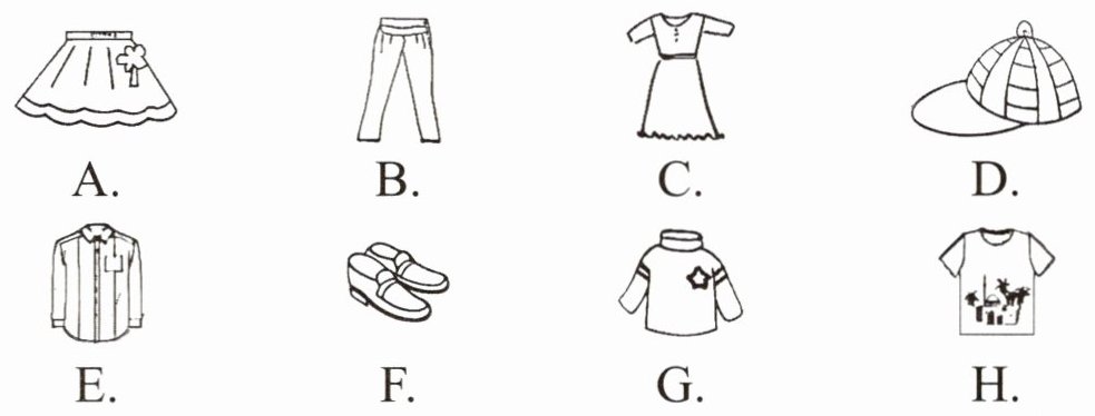 读对话,从图中选出Mike和Sarah旅行要带的衣物。(难度系数★★)