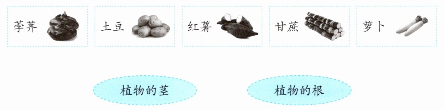 下面这些是我们经常吃的食物,你知道它们分别属于植物的哪部分器官吗?请用线连一连。