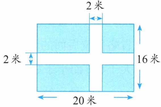 如右图所示,李爷爷家有一块菜地,长20米,宽16米,菜地中间留了两条宽2米的路,其余部分种蔬菜,蔬菜地的面积是多少?