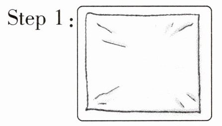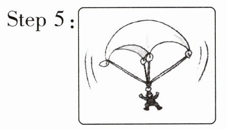 制作降落伞的步骤依次为:取出布块→用绳子绑住布块边角→将四条绳子拴在一起并系住玩偶→将玩具抛向空中,最终现象是玩具在空中缓慢移动。