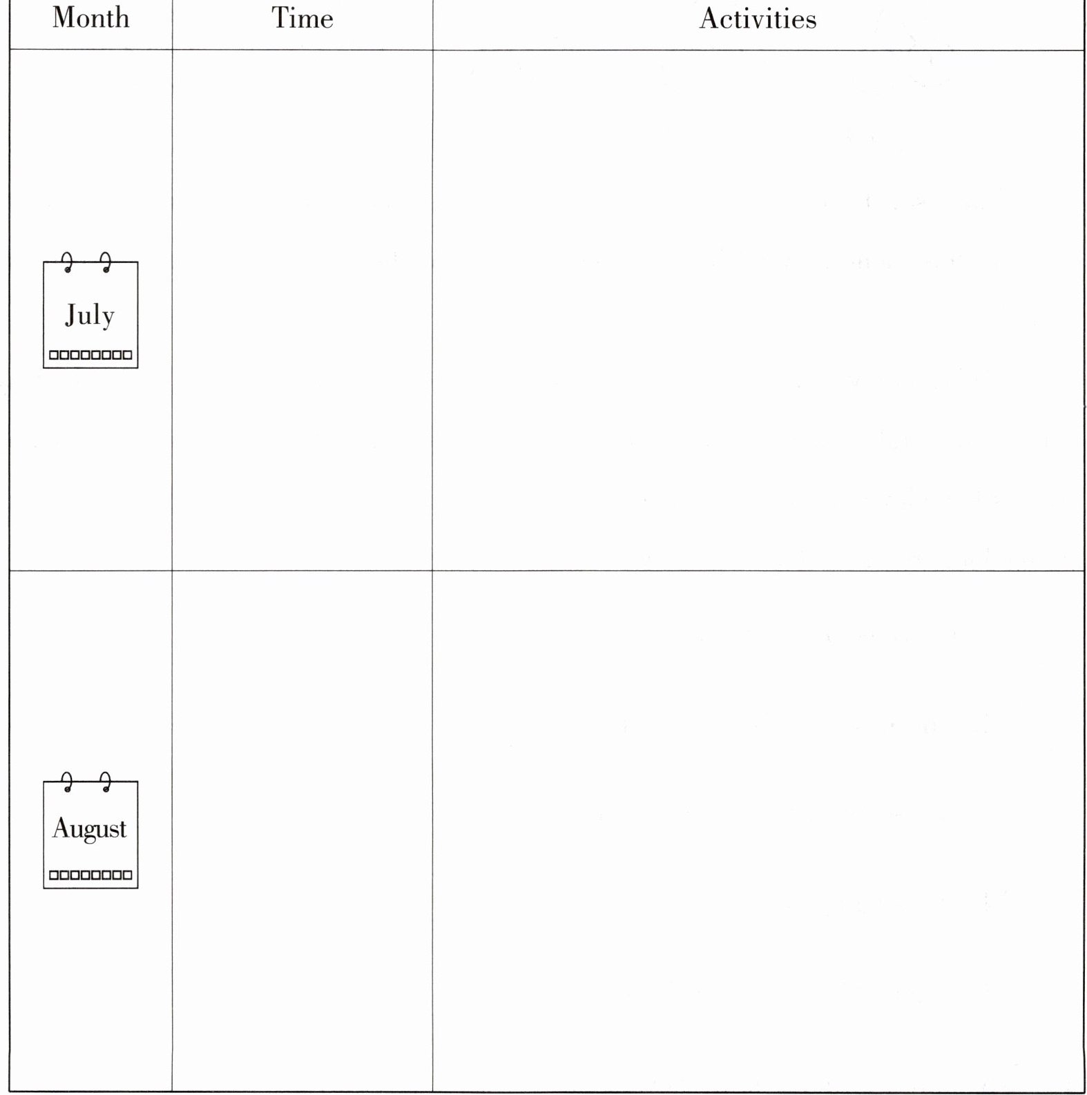 小伙伴们,summer vacation is coming! 是不是期盼已久了呢? 不知道大家对自己的暑假生活是否有所计划呢? 在电影《摇尾狗》中有一句经典台词“A good plan today is better than a perfect plan tomorrow.”(今天的好计划胜过明天的完美计划。)所以,大家要好好地规划自己的暑假时光,要注意劳逸结合哦!