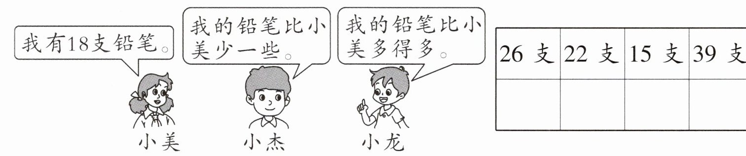 1. 小杰可能有多少支?(画“$\triangle$”)小龙可能有多少支?(画“$◯$”)