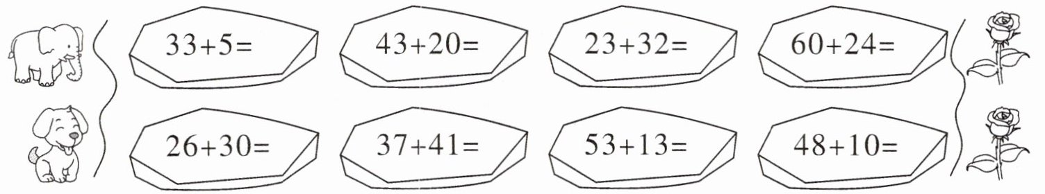 )。①$42+5$ ②$42+50$ ③$24+15$