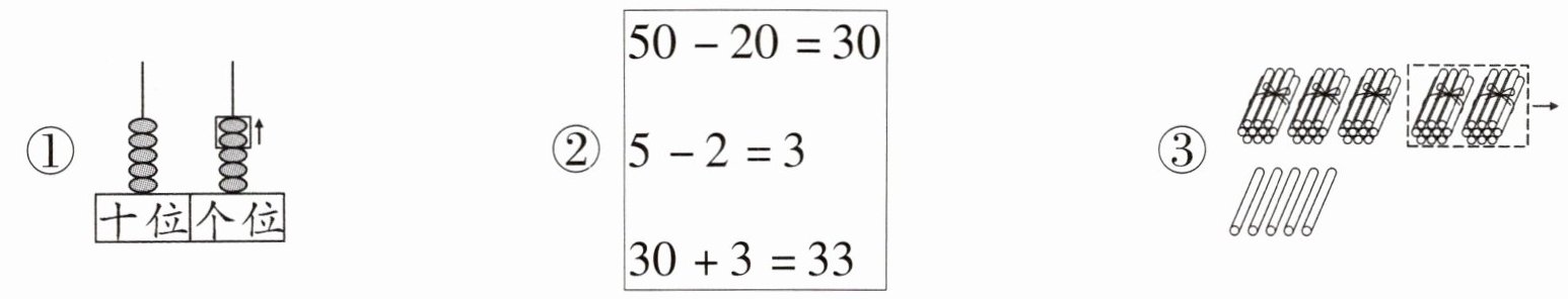 1. 新趋势·算理理解下面有关“55 - 22”的计算方法正确的是(