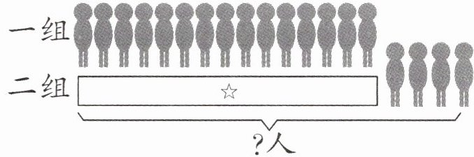 1.要解决“一组有15人,二组比一组多4人,二组有多少人?”这个问题,东东画了一张图。图中“☆”所在的长框表示的是(