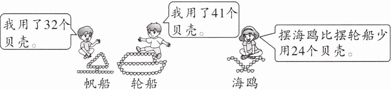 (1)摆轮船比摆帆船多用了多少个贝壳?