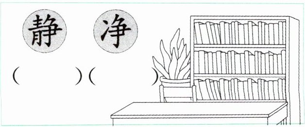 三、图书馆的墙壁上写着两个字,它们分别是什么意思呢? 选一选,把序号写在括号里。