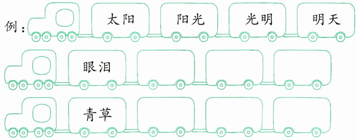 示例:泪水 水花 花朵 草地 地上 上车