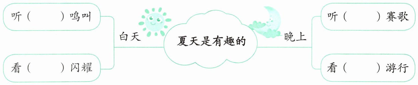 4. 夏天怎样有趣呢?选择相应事物的序号填入下面的导图中。
