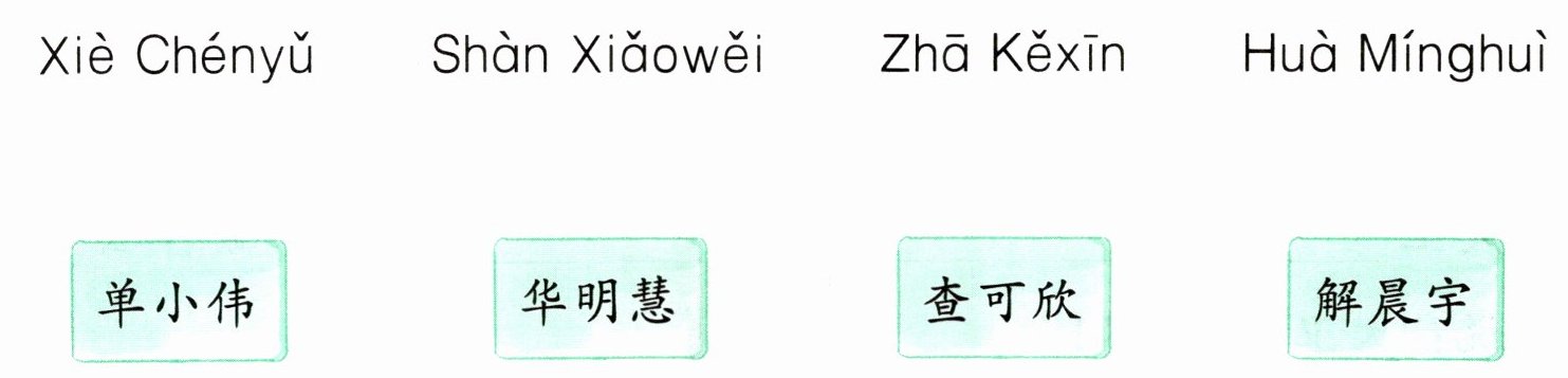 三、从 姓 名 中 识 字。拼 一 拼,连 一 连。