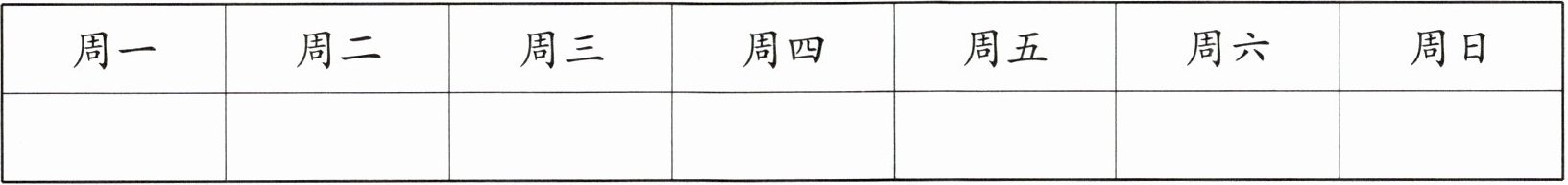 一、制作计划表 你喜欢哪些运动?快来完成下面的周计划表,试着挑战不同的运动吧!(填序号)