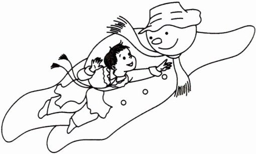 ③接下来,该轮到雪人了。它拉着少年出了门,牵着他飞到了风雪交加的天空中。他们飞过荒野,降落到了看得到海的栈桥上。可看着看着,雪人突然发现不对劲儿,天边出现了一抹红霞,不好,太阳要出来了!