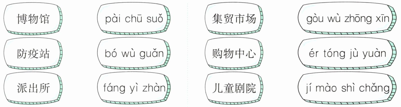 四、生活中,你见过这些标牌吗? 将下面的标牌与对应的读音连一连。