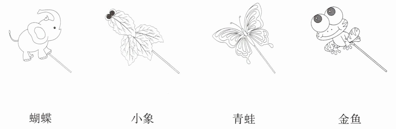 一、连一连 胡同里的老爷爷可以用糖浆绘制出许多精美有趣的图案,你知道下面糖画描绘的是什么吗?