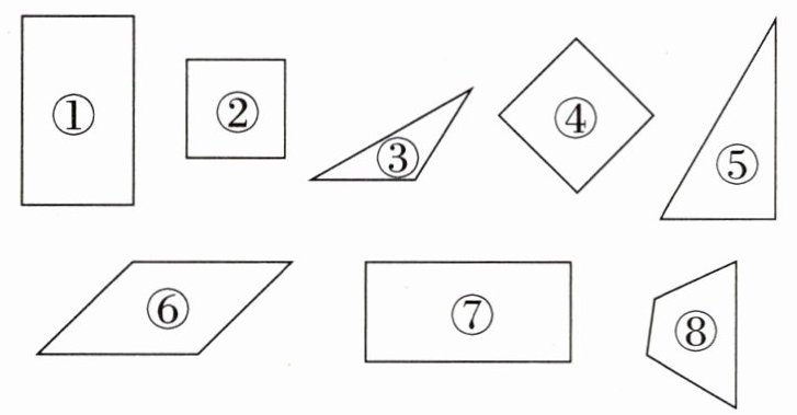 长方形:①⑦ 正方形:②④ 三角形:③⑤ 平行四边形:⑥