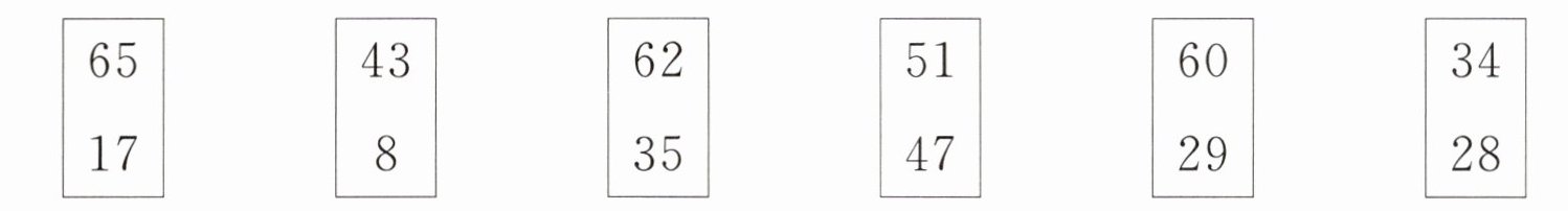 1. 先算出每张卡片上两个数的和,再算出它们的差。