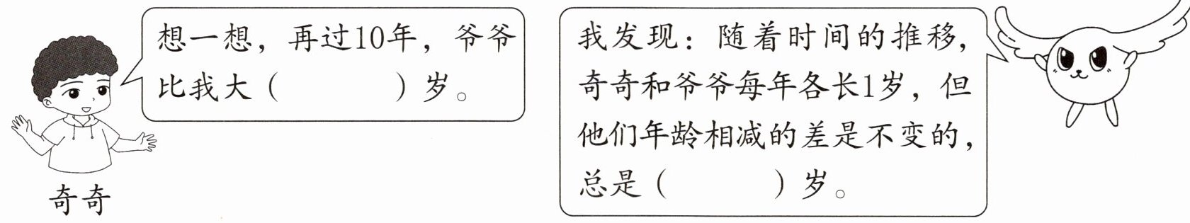 今年爷爷62岁,奇奇10岁。爷爷比奇奇大( )岁。