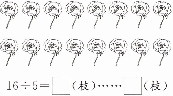 (2)16枝花,平均插在5个花瓶里,每个花瓶插(