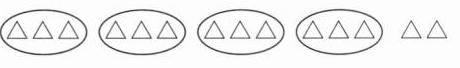 2. 有14个萝卜,平均分给4只小兔。分一分,把分的结果画出来。(用1个$\triangle$代表1个萝卜)