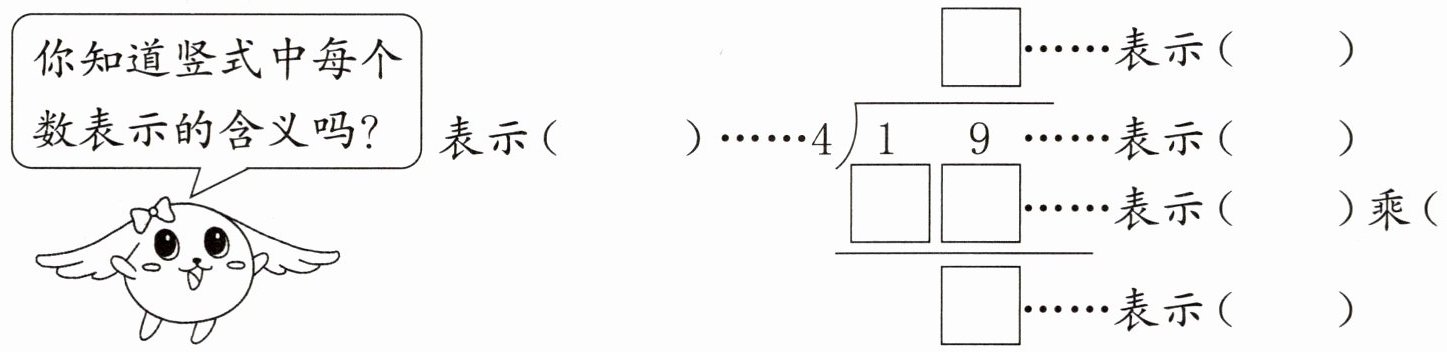 )个。$19÷4= □$(盘)……$□$(个),其中第一个$□$填